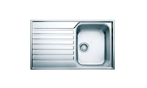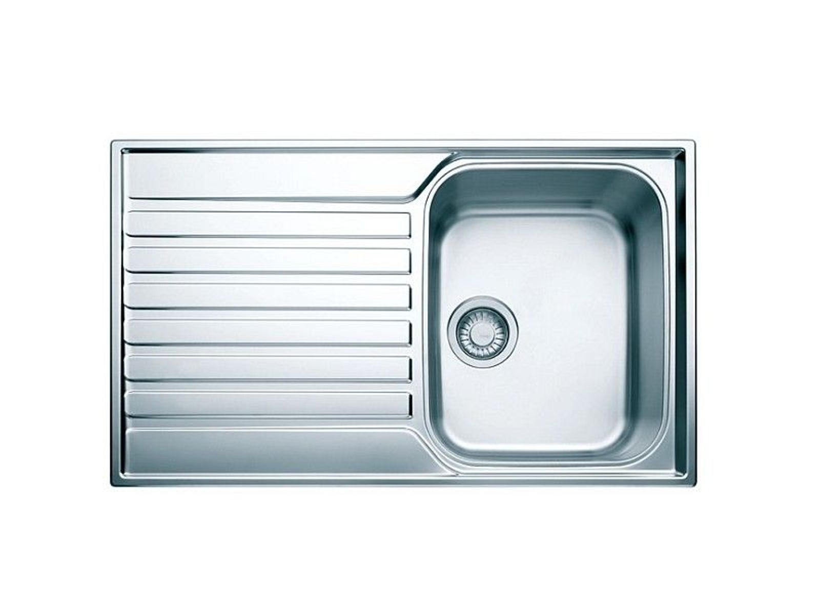 ASX 611 860x510mm, omkeerbaar, roestvrij staal geborsteld, met ventielset, 3 1/2", met overloopgleufjes en 2 kraangaten.