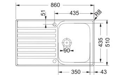 ++ Buitenafmetingen (B x D): 860 x 510 mm ++ Diepte spoelbak: 175 mm ++ Uitsparing (B x D): 840 mm ++