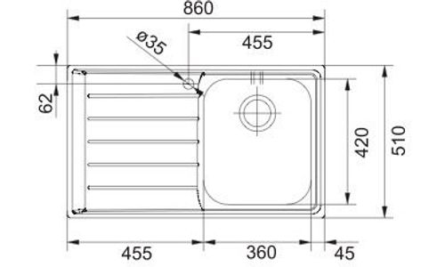 ++ Materiaal: ROESTVRIJ STAAL ++ Buitenafmetingen (B x D): 860 x 510 mm ++ Diepte spoelbak: 195 mm ++