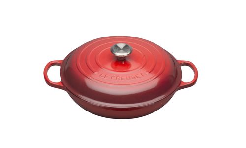 De multifunctionele braad-/stoofpan van Le Creuset neemt een zeer grote hoeveelheid warmte en verdeelt deze geleidelijk over de pan. Dankzij zijn lage wanden en hun grote kookoppervlak, is deze pan perfect voor het bereiden van sappig gestoofd vlees, roerbakgerechten met groenten, schaaldieren en zelfs bourgondische desserts.