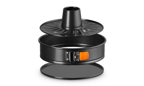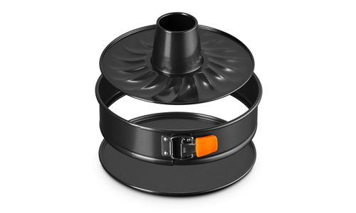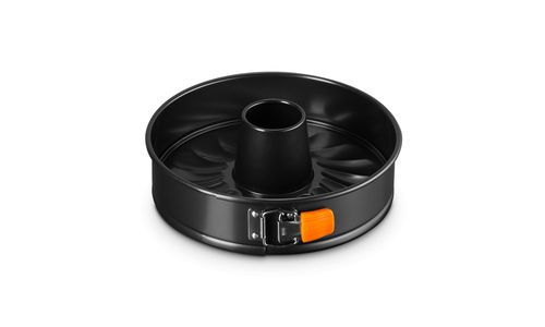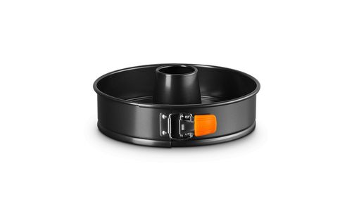 Deze ronde springvorm heeft een opening in het midden, zodat u prachtig gevormde taarten kunt maken. De supergladde anti-aanbaklaag aan de binnenkant zorgt ervoor dat uw creaties moeiteloos loslaten, voor een perfect resultaat. En dankzij de siliconen handgrepen kunt u de springvorm snel en eenvoudig openen, zodat u direct kunt decoreren en opdienen!