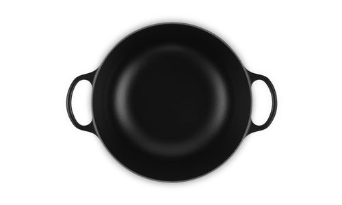 Familierecepten worden van generatie op generatie doorgegeven, net als ons gietijzeren pannen. En deze familiepan is geen uitzondering. Hij is praktisch, stijlvol en gaat lang mee. Afgeronde zijwanden zorgen voor gemakkelijk roeren en een moeiteloze bereiding van eenpansgerechten. Bourguignon? Bouillabaisse? Wij zijn van de partij.