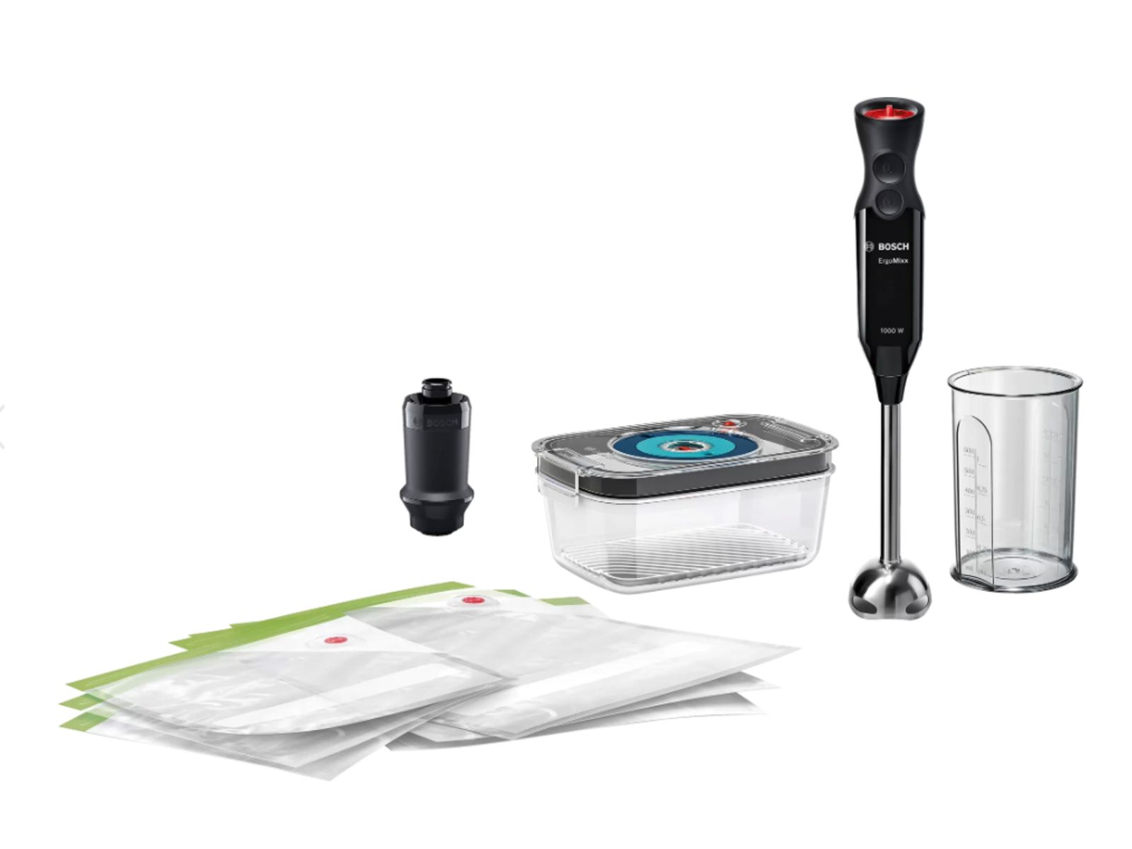 Elke dag verse voeding dankzij de krachtige staafmixer met vacumeeraccessoires.
