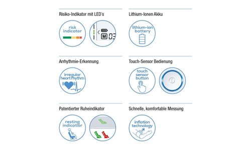 Optimale bloeddrukmeting met app en software - houd altijd en overal uw waarden in de gaten. De bovenarmbloeddrukmeter valt op door zijn bijzonder aantrekkelijke design en een groot aantal slimme technische kenmerken. Aanraaksensorknoppen, het grote wit verlichte display en de geïntegreerde rustindicator zorgen ervoor dat bloeddrukmetingen betrouwbaar en gemakkelijk zijn voor de gebruiker.