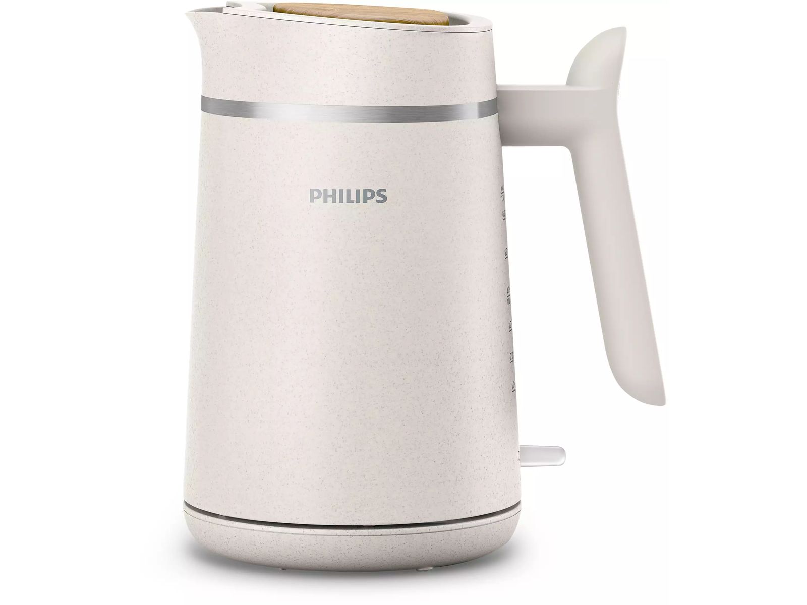 De 100% biobased plastics** zijn gemaakt van biologische en hernieuwbare bronnen, zoals zonnebloemolie. Gebruikte olie die bij het koken achterblijft, wordt verzameld en gerecycled via een milieuvriendelijk proces om deze geschikt te maken voor contact met voedsel. De waterkoker heeft een meervoudig veiligheidssysteem om te voorkomen dat deze ook zonder water werkt.