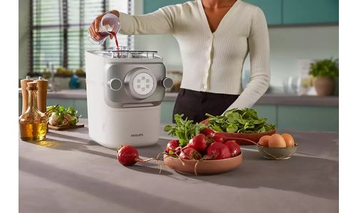 Met de Philips 7000-pastamachine kunt u in minder dan 10 minuten een scala aan smakelijke, zelfgemaakte pastagerechten bereiden*. Dankzij de eenvoudige reiniging en grote capaciteit is dit het ideale hulpmiddel om thuis te genieten van verse pasta met familie en vrienden.