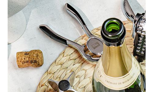 De Vacu Vin Champagneflesopener verwijdert in één beweging de folie, draadkooi en kurk van elke champagne- of mousserende wijnfles.