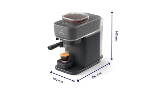 Zet koffie als een echte barista met één druk op de knop met de Philips Baristina BAR300/60. Doe je favoriete bonen in de machine, kies je koffie en de machine doet zijn werk. De bonen worden met de juiste druk gemalen, zodat jouw koffie hetzelfde smaakt als bij je favoriete koffietentje om de hoek. De gemalen koffie valt in de automatische tamper. Wanneer je koffie klaar is, haal je de tamper uit de machine en klop je `m leeg in de vuilnisbak. Zo ben je weinig tijd kwijt aan het schoonmaken van de machine. Dankzij het smalle formaat past de machine in iedere keuken. Door het strakke ontwerp is de Baristina een toevoeging op ieder aanrecht.