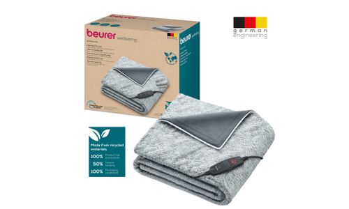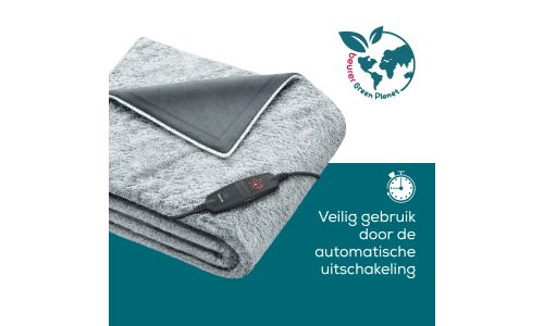De elektrische bovendeken Nordic Grey uit de Green Planet-serie van Beurer met fleecevezeloppervlak zorgt voor gezellige uren op de bank of in de slaapkamer. Voor meer duurzaamheid zijn de boven- en onderkant van de elektrische deken gemaakt van 100% gerecycled materiaal en is de afneembare schakelaar gemaakt van 50% gerecycled materiaal. Voor een veilig en schoon gevoel heeft de HD 75 Green Planet een automatische uitschakeling en is hij wasmachinebestendig.