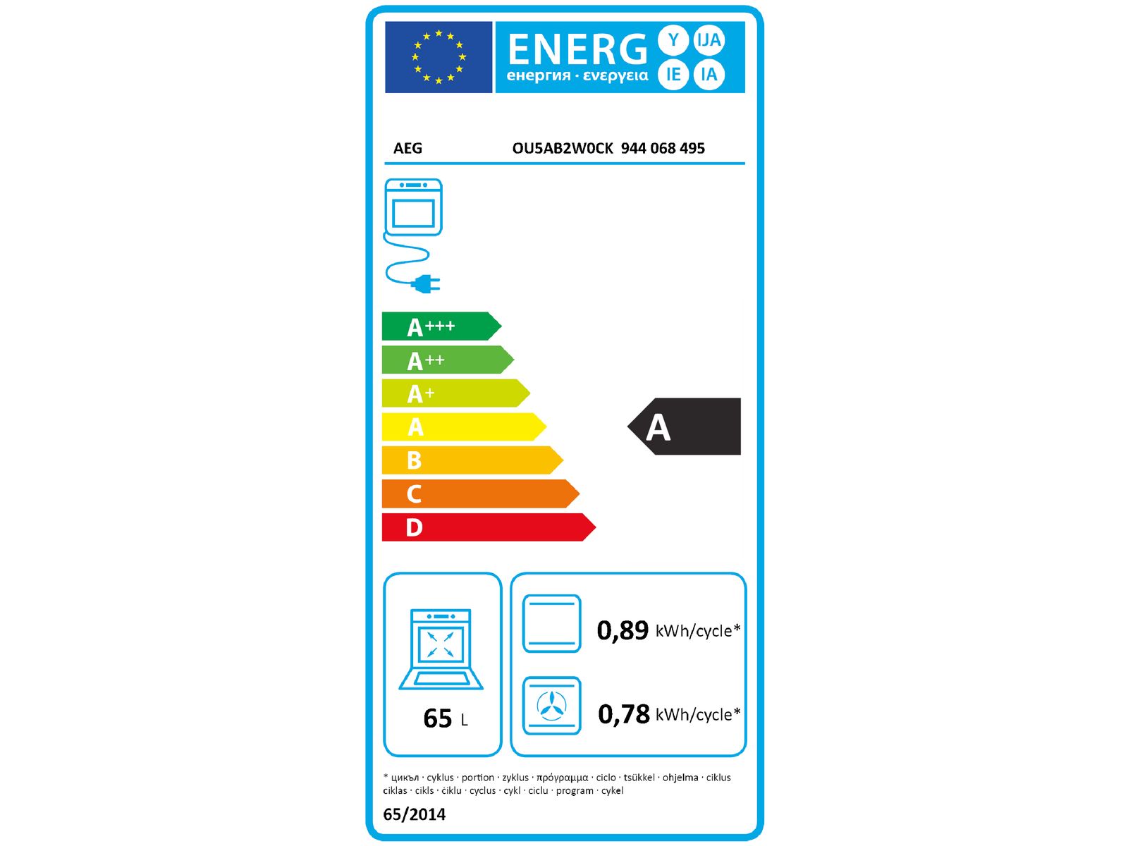 | Inhoud ovenruimte | 65 Liter |