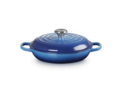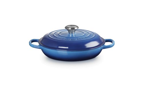 Onze gietijzeren producten zijn gemaakt in onze originele Franse gieterij en zijn een culinaire legende. Deze ondiepe stoofpan vormt daar geen uitzondering op. De grote platte vorm en de lage randen maken hem perfect om vlees en groenten te bruinen, stoofpotten te laten sudderen, te roerbakken en te bakken. Karamelliseren krijgt een extra dimensie, waardoor elke hap naar meer smaakt.