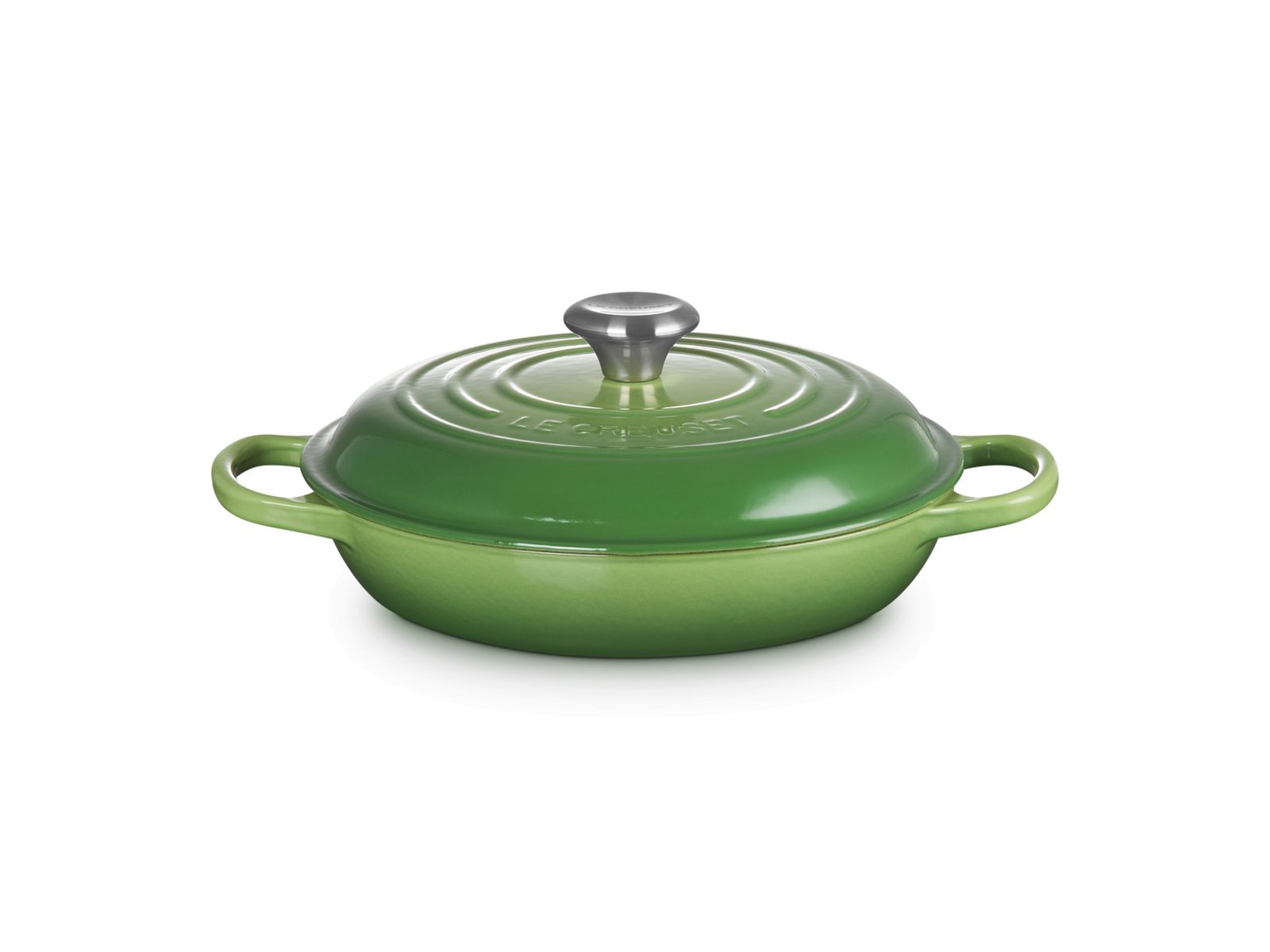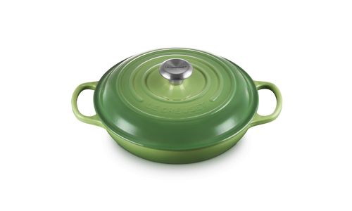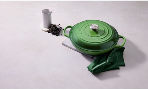 Onze gietijzeren producten zijn gemaakt in onze originele Franse gieterij en zijn een culinaire legende. Deze ondiepe stoofpan vormt daar geen uitzondering op. De grote platte vorm en de lage randen maken hem perfect om vlees en groenten te bruinen, stoofpotten te laten sudderen, te roerbakken en te bakken. Karamelliseren krijgt een extra dimensie, waardoor elke hap naar meer smaakt.