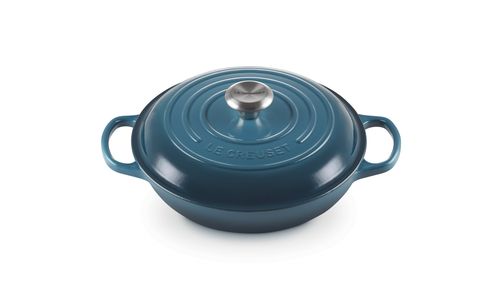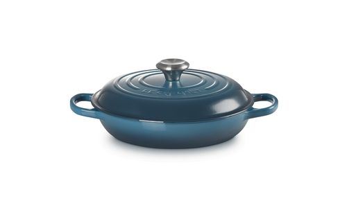 Onze gietijzeren producten zijn gemaakt in onze originele Franse gieterij en zijn een culinaire legende. Deze ondiepe stoofpan vormt daar geen uitzondering op. De grote platte vorm en de lage randen maken hem perfect om vlees en groenten te bruinen, stoofpotten te laten sudderen, te roerbakken en te bakken. Karamelliseren krijgt een extra dimensie, waardoor elke hap naar meer smaakt.