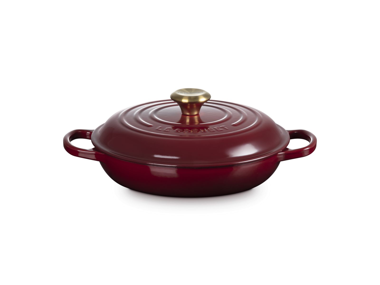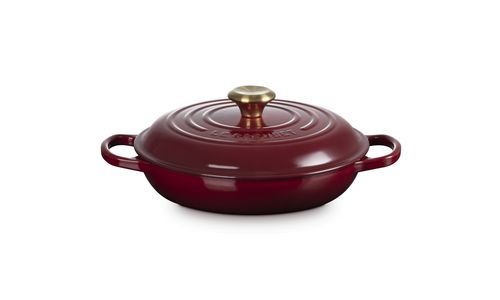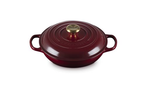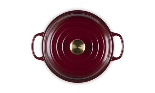 Le Creuset Campagnard in Geëmailleerd Gietijzer Signature rond met goudkleurige knop 26cm Garnet