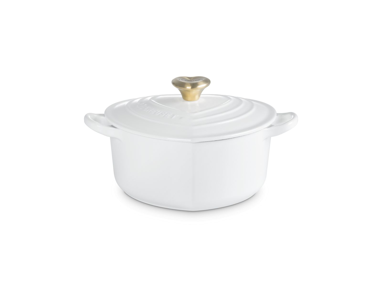 Dit iconische item is met liefde vervaardigd en is een ideaal cadeau om Moederdag, Valentijnsdag, een verjaardag of een bruiloft te vieren. De zoete hartvorm is gedurfd anders dan de andere stukken uit de gietijzeren collectie, maar de functionaliteit blijft hetzelfde. De gietijzeren constructie verwarmt gelijkmatig voor overheerlijke smaken en houdt voedsel langer warm als het aan tafel wordt getoond. Het is perfect ontworpen voor stoofschotels, braadstukken, soepen, ovenschotels en hartvormige cakes. En een prachtige hittebestendige hartvormige knop zorgt voor de finishing touch.