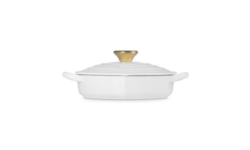 Deze hartvormige stoofpan kan het allemaal, van sudderende, rustgevende stoofpannen tot het bakken van luchtige focaccia. Gemaakt van premium gietijzer en afgewerkt met een roestvrijstalen knop, kan deze levenslange keukencompagnon van fornuis naar oven gaan en voegt een vleugje romantiek toe aan elk tafellandschap.