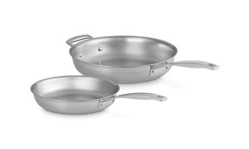 Deze 2-delige set bestaat uit rvs koekenpannen zonder anti-aanbaklaag van 24 cm en 28 cm – perfect voor dagelijks bakken, aanbraden en sauteren. Geniet van eenvoudige veelzijdigheid voor elk recept.