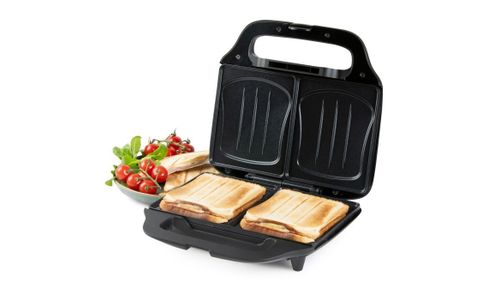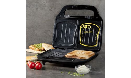Maak in een handomdraai twee heerlijke XL croques met de DOMO Croque XL DO9297C. De extra grote bakplaten van 27 x 16 cm bieden 50% meer bakoppervlakte dan een klassiek toestel, waardoor je ook gewone boterhammen perfect kunt gebruiken – niet alleen klein toastbrood. De PFAS-vrije keramische anti-aanbaklaag garandeert moeiteloos bakken en eenvoudig schoonmaken. Handige indicatielampjes tonen wanneer het toestel aanstaat en klaar is voor gebruik, terwijl antislipvoetjes en snoeropberging zorgen voor veiligheid en compact opbergen. Ideaal voor een snelle lunch of een smakelijke snack – met dit toestel wordt croques maken kinderspel.